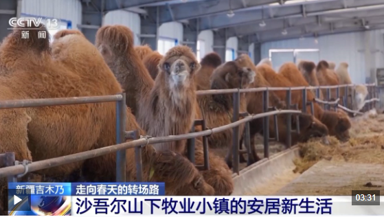 清晨,第一缕阳光缓缓洒落,笼罩着静谧的喀尔交镇。伴着牲畜的轻鸣,这座牧业小镇慢慢苏醒,开启了充满生机的一天。趁着休息日,牧民夏利哈尔带着小孙子叶尔木拉提来到养殖基地,给圈舍里的骆驼、牛羊添草喂食。曾经辗转牧场的牛羊、骆驼,悉数住进了规整干净的标准化棚圈。曾经游牧的辛劳,如今已变成家门口的日常劳作。
