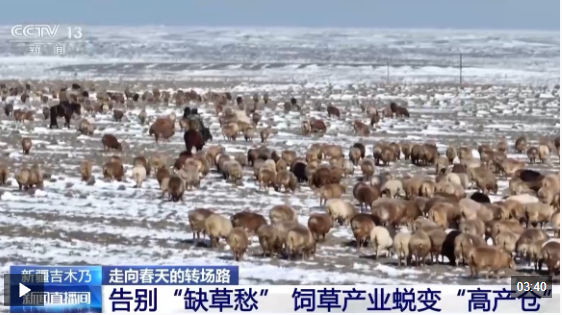 在吉木乃县喀尔交镇的饲草料储备库,每天都有周边的牧民到这里购买饲草料,充足的饲草储备不仅为春季转场的牛羊提供沿途的食物保障,同时还能为接羔育幼提供草料补给,让牧民们告别“缺草慌”,让养殖牛羊更有信心。