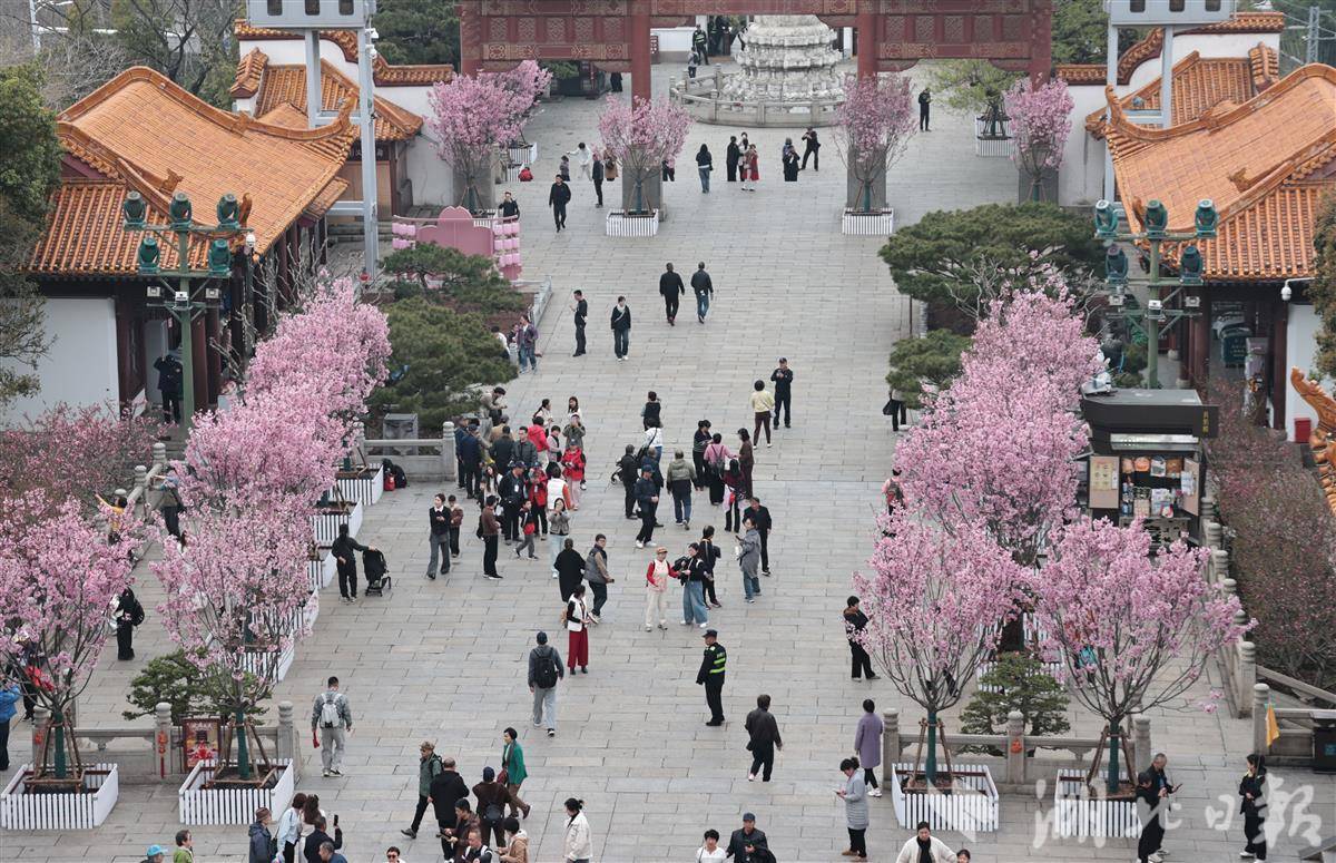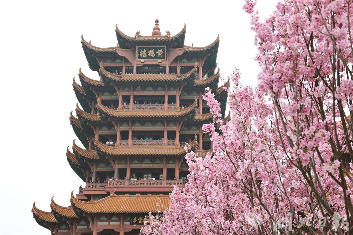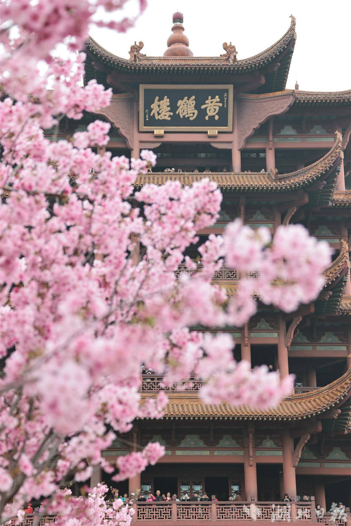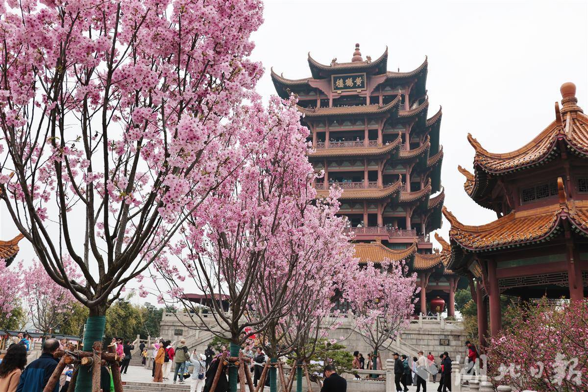 3月22日,武汉黄鹤楼景区内樱花树进入盛花期,粉白花朵如云似霞,花香浮动,与黄鹤楼飞檐翘角相映成趣,勾勒出独属于江城的春日诗意。不少游客驻足打卡、拍照留念,用镜头定格古建筑与浪漫樱花交融的绝美瞬间。古韵与春色碰撞,历史与温柔相逢,绘就一幅动人的江城春日画卷,成为武汉春季热门打卡地。(湖北日报全媒记者 陈迹 摄)