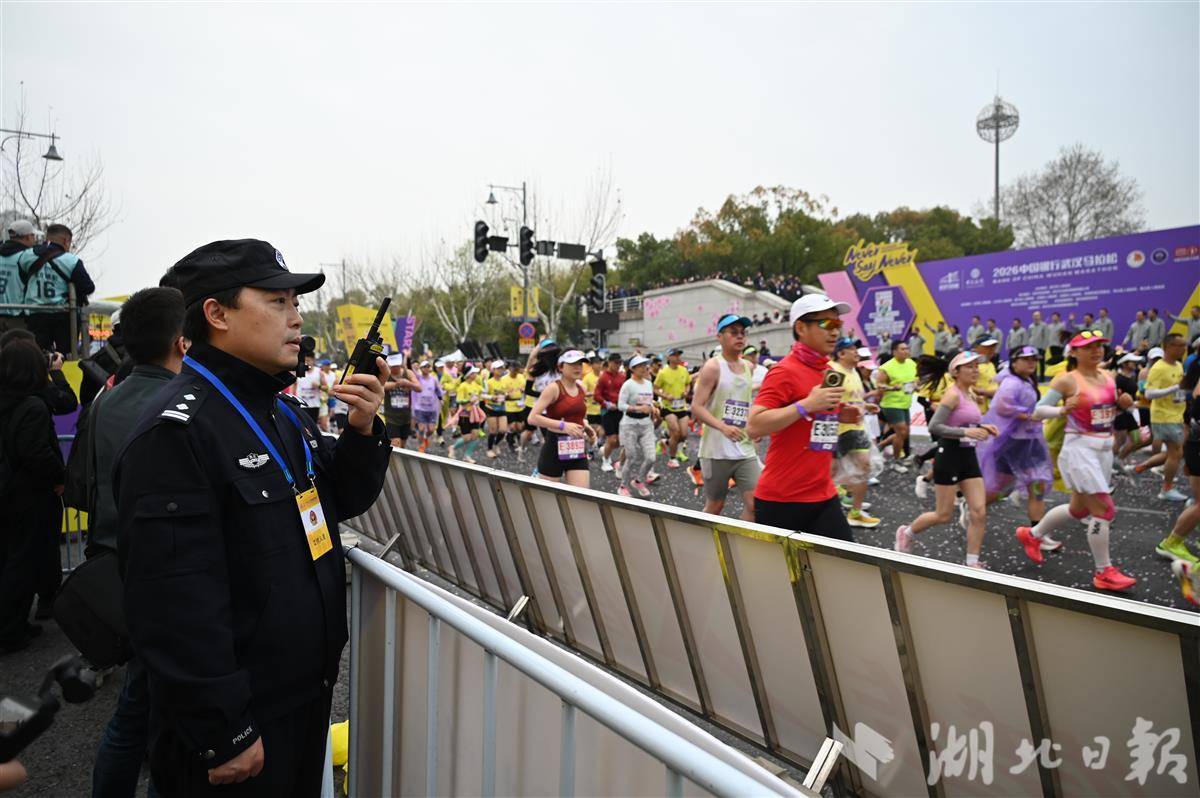 长江之畔,繁花烂漫。3月22日7时30分,2026武汉马拉松在春日晨光中鸣枪开跑。3万名海内外跑者穿越花海、跨江越湖,用脚步丈量英雄城市的浪漫与活力。在这场盛大的赛事狂欢背后,武汉公安构建起“水陆空轨”立体化安保体系,以严密举措筑牢安全防线,用暖心服务传递城市温度,倾力守护赛事平安精彩。