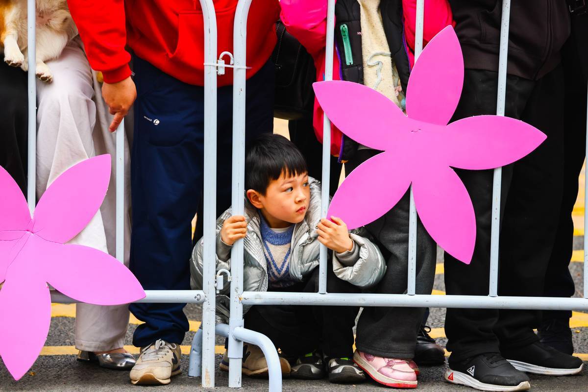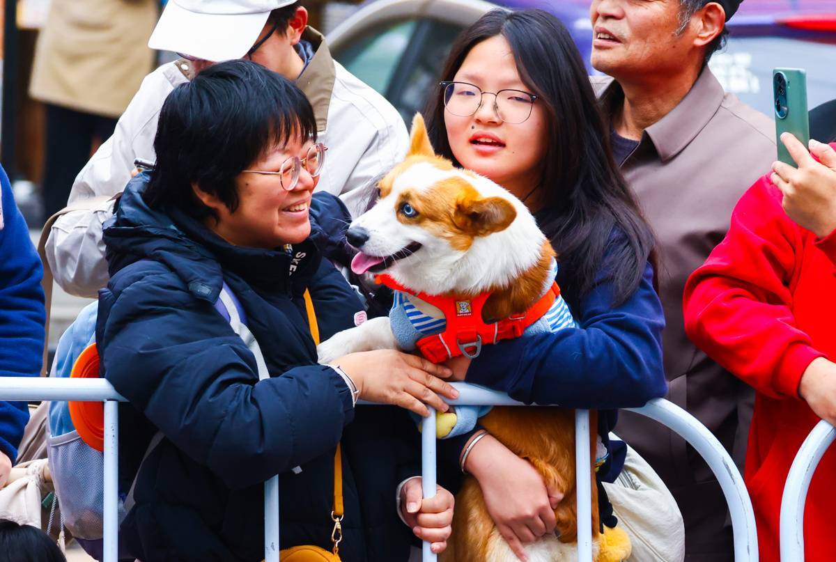 3月22日,市民带着宠物为参赛选手加油。(湖北日报全媒记者 柯皓 摄)