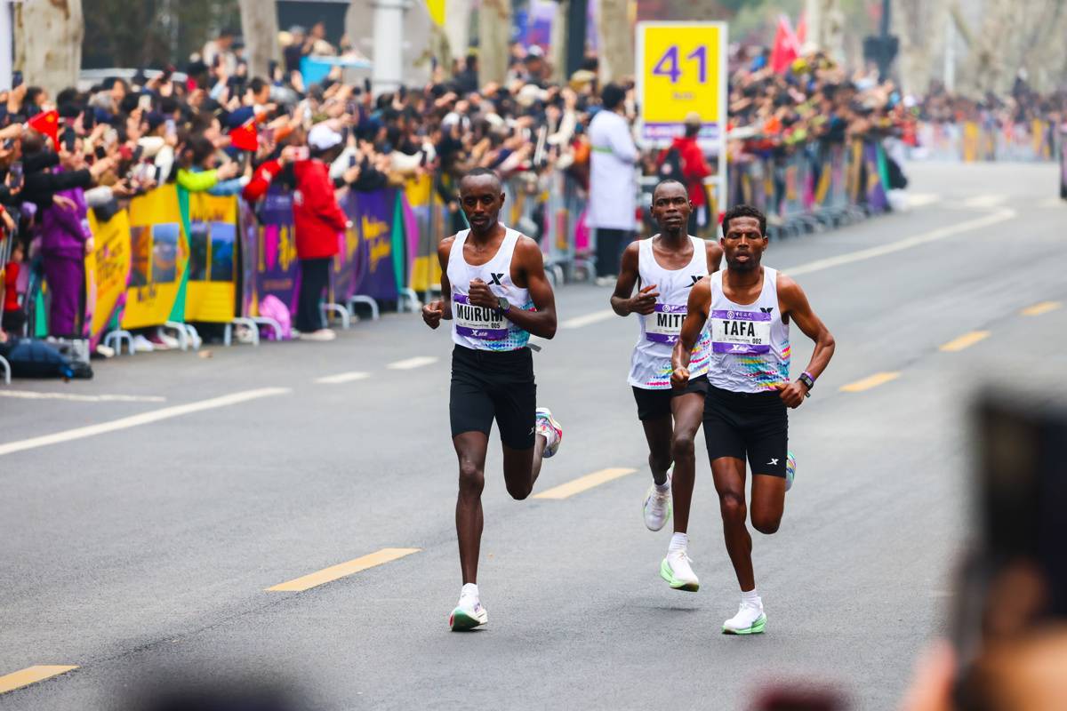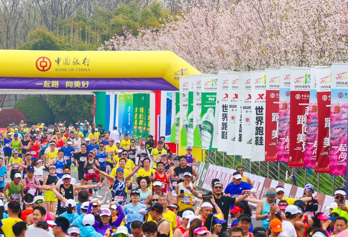 3月22日,来自世界各地的参赛选手冲过终点。(湖北日报全媒记者 柯皓 摄)