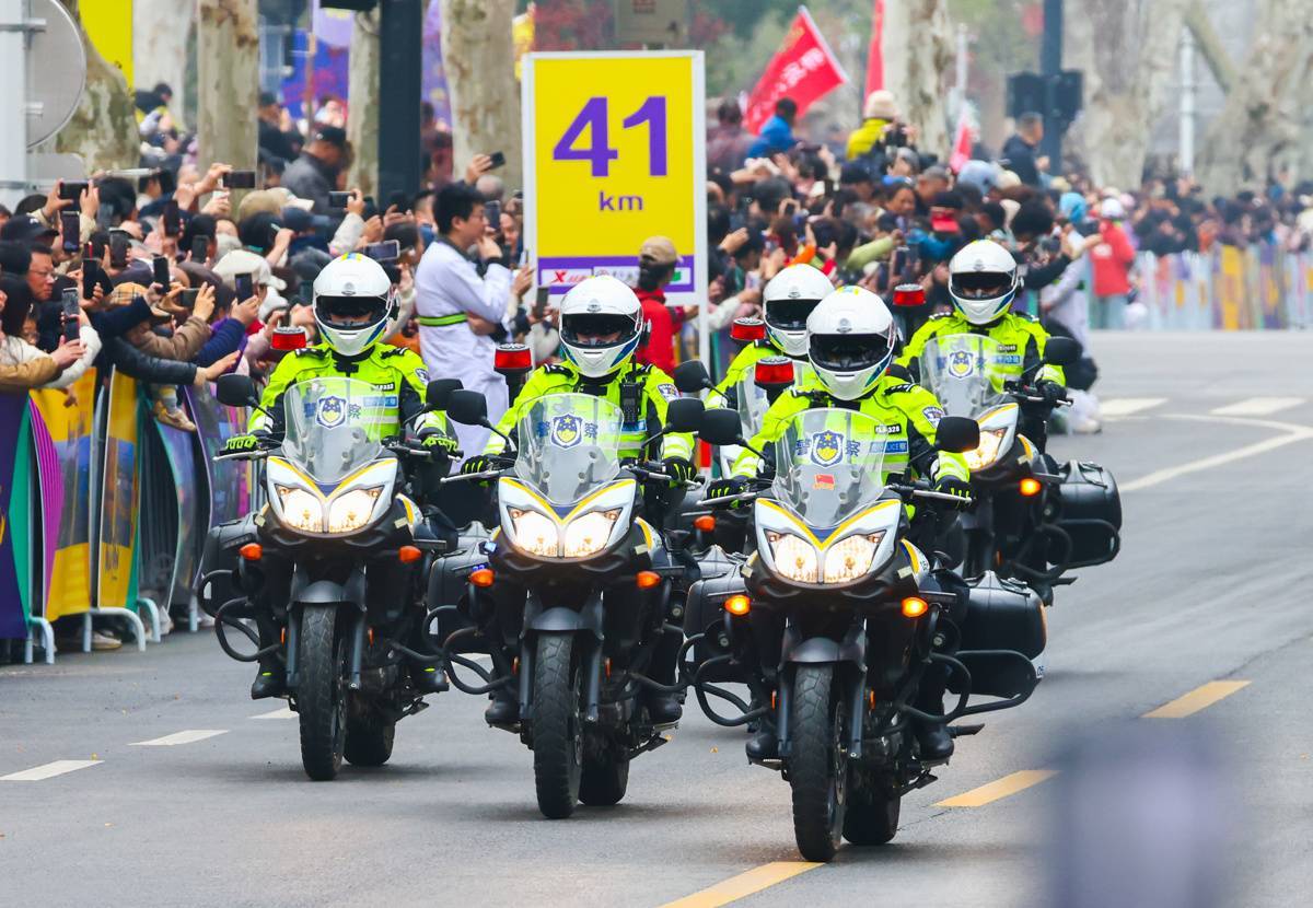 3月22日,骑警为选手们护航。(湖北日报全媒记者 柯皓 摄)
