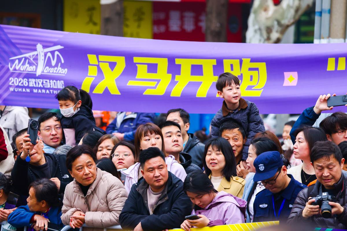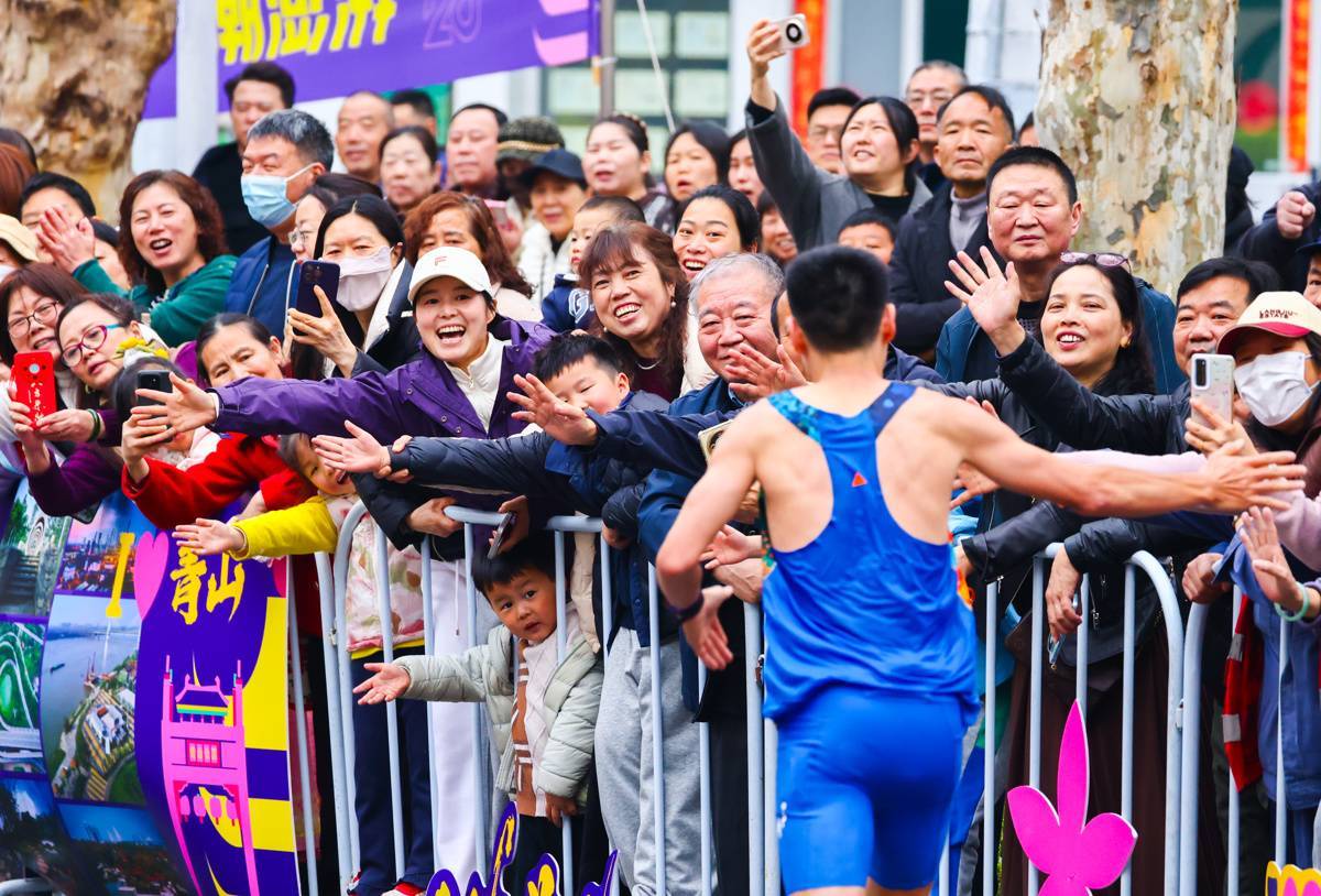 3月22日,赛道旁的志愿者和市民为参赛选手呐喊助威。(湖北日报全媒记者 柯皓 摄)