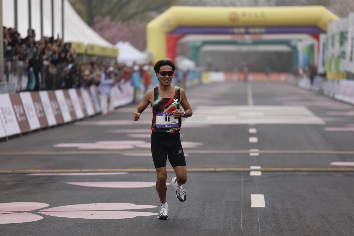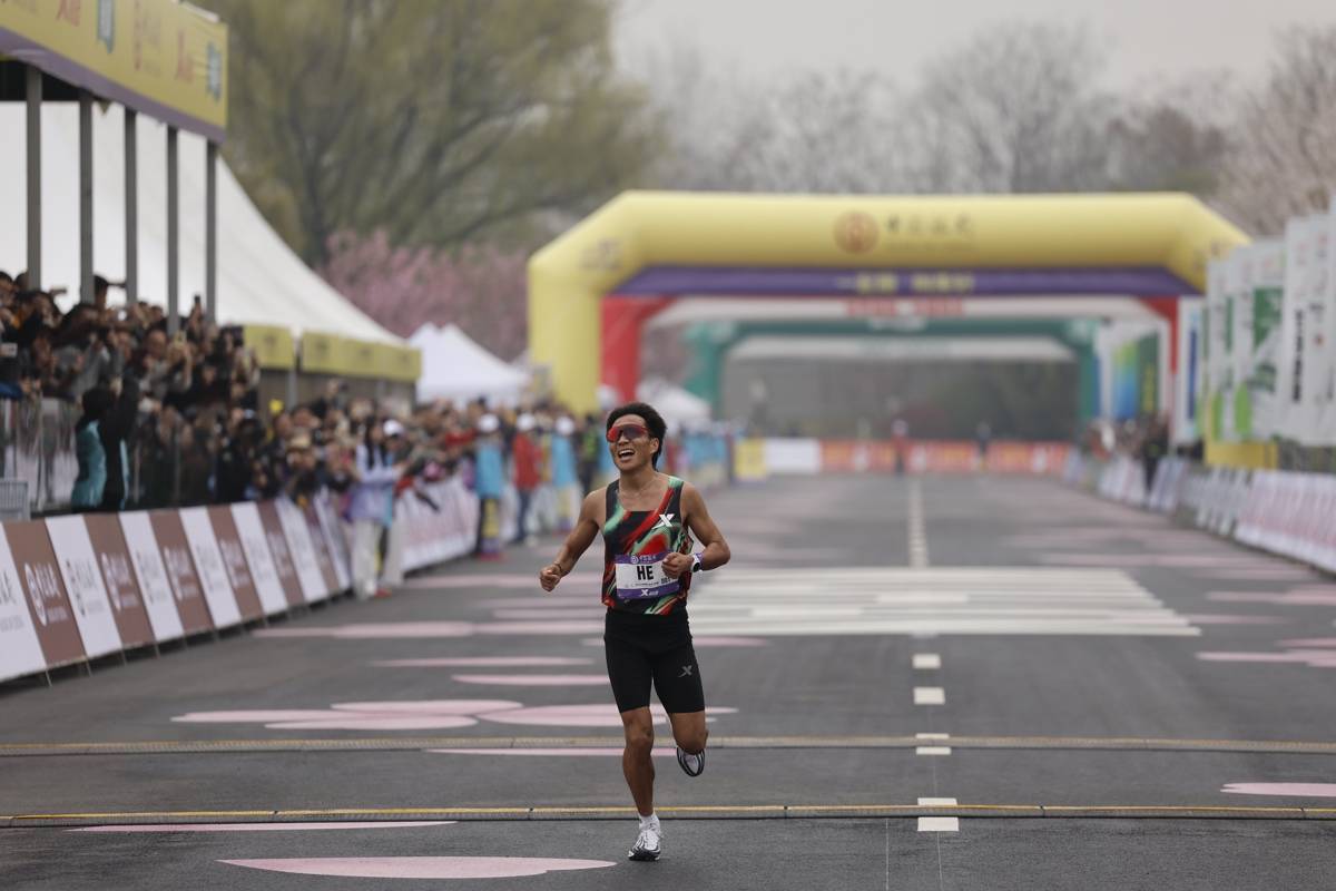 2026年3月22日,2026武汉马拉松鸣枪起跑。中国选手何杰以2小时10分56秒的成绩斩获男子国内冠军、全场第四名,连续第三年加冕武汉马拉松国内冠军。(湖北日报全媒记者 倪娜 摄)