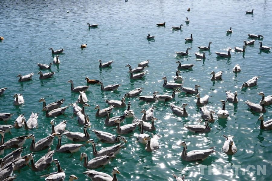 中国西藏网讯 春日暖阳下,西藏拉萨河迎来极富生机的时节。每逢冬日,拉萨河成为候鸟们眷恋的越冬家园,斑头雁与赤麻鸭用鲜艳的羽色点缀着河谷的色彩,与远山、碧水共同构成一幅灵动的生态画卷。远山含黛,碧水如镜,候鸟翩跹,构成一幅幅动人的生态画卷。镜头所至,生机盎然,画面之中,尽显高原生态环境之美。(中国西藏网 实习记者/宋俊 张艺彤)