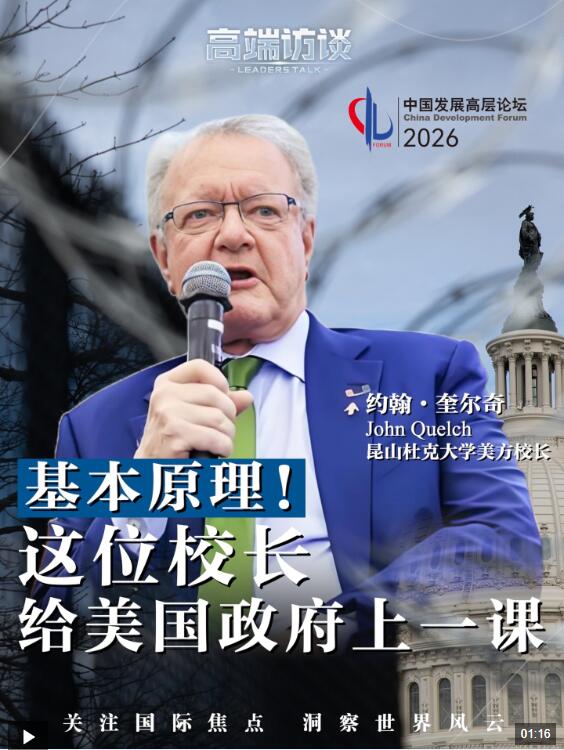 3月22日,中国发展高层论坛2026年年会在北京举行。昆山杜克大学美方校长约翰·奎尔奇在现场谈到贸易保护主义时坦言,这将招致全球反对,只会产生严重的负面后果。
