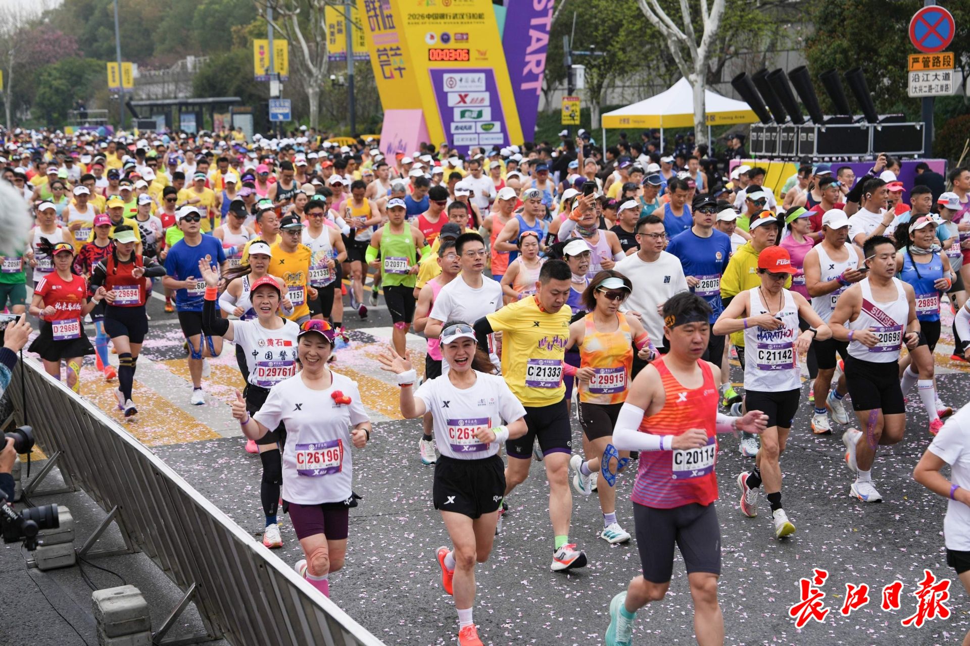 3月22日清晨7时30分,2026武汉马拉松正式鸣枪起跑,三万名选手从汉口沿江大道奔涌而出。长江日报记者彭年 摄