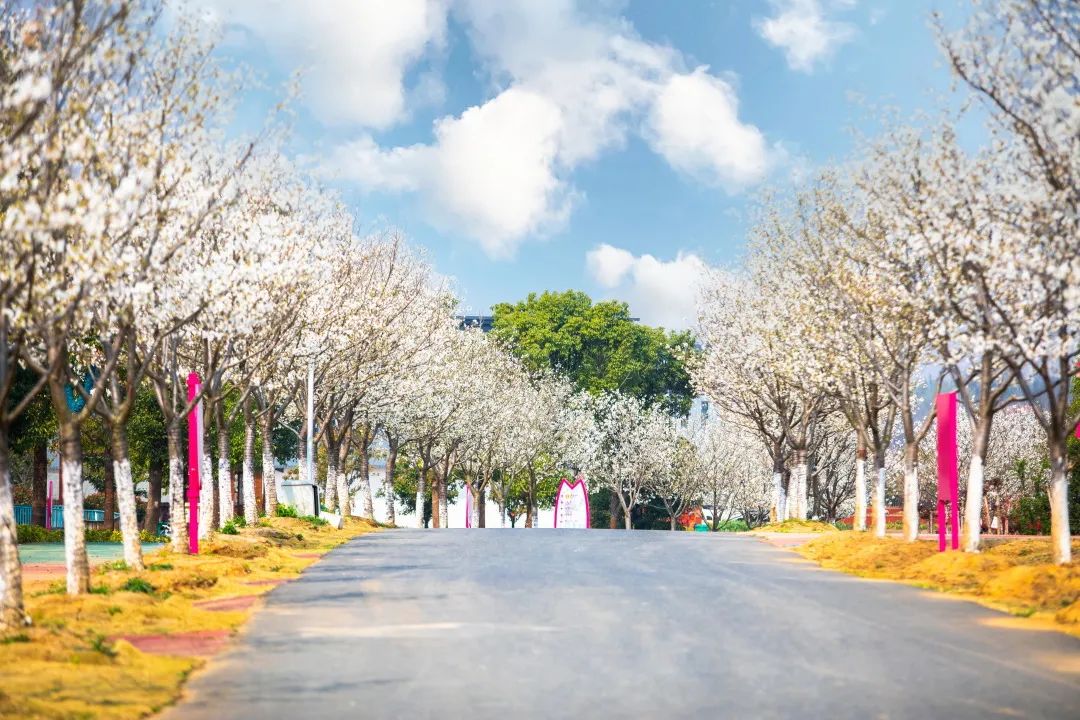 作为华中紫荆樱连片种植面积最大的樱花主题景区,3902亩的园区内,凤凰河碧波荡漾,紫石河蜿蜒曲折,樱花大道上落英缤纷,与四季花海的五彩斑斓相映成趣,植被覆盖率超80%的生态环境,让这里宛如世外桃源。