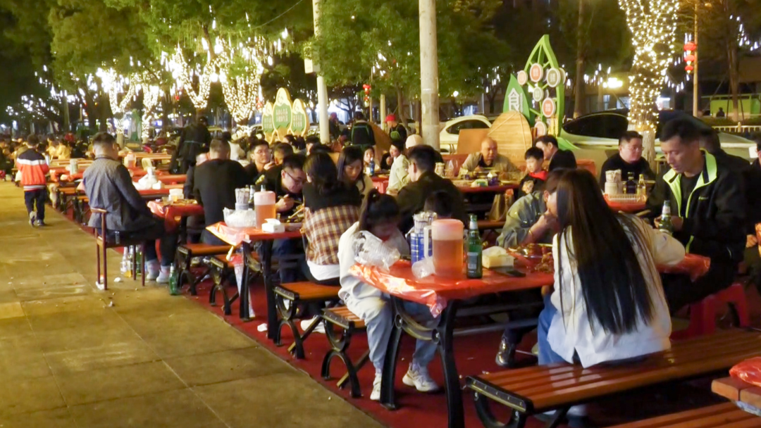 烧烤摊前,与三五好友围炉而坐,撸串畅聊,在烟火气中感受着这座小城的温情与热闹,正是安陆周末最惬意的打开方式。记者周围几桌客人,听口音是武汉来的游客,对安陆烧烤赞不绝口:“味道蛮是那个事。”