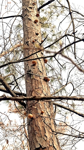 这场惊喜的发现,源于一场细致的野外科考。2026年3月,湖北大学李兆华教授调查团队与武汉格桑花环境科技有限公司调查团队携手,在郧西县开展生物多样性春季野外调查。当队员们行进至安家乡石门路的马尾松林时,一株枯立木上形态特异的真菌吸引了大家的注意,它的子实体呈蹄形至扁球形,孔口被膜状物质包裹,仅基部留有一个小孔,与已知隐孔菌属物种特征高度契合。
