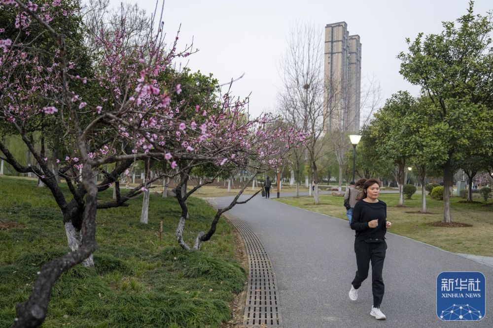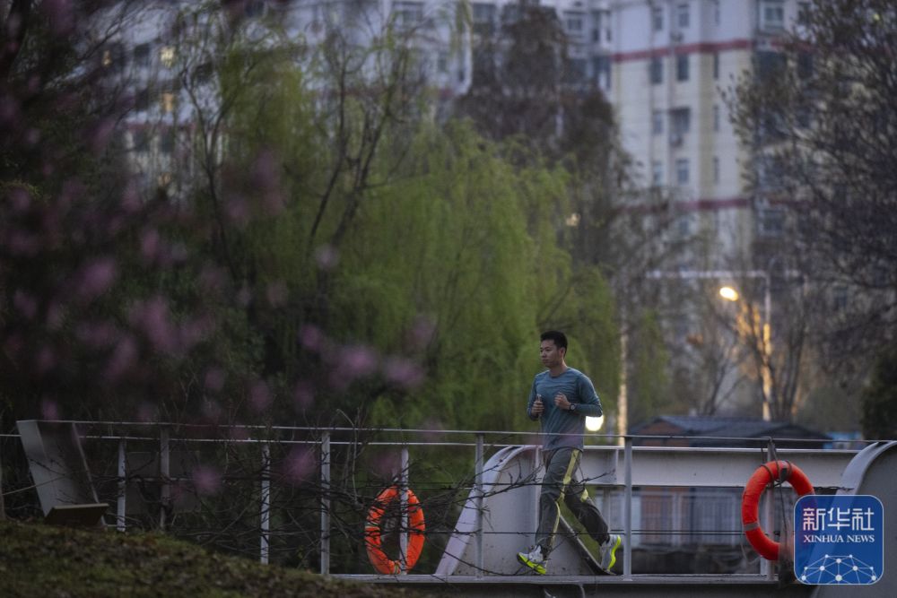 ↑市民在武汉沙湖公园跑步(3月21日摄)。新华社记者 伍志尊 摄