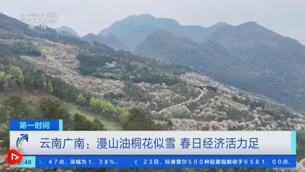 眼下,在云南省广南县者太乡,两万多亩油桐花进入最佳观赏期,漫山遍野繁花似雪,吸引众多游客前去踏春赏景。当地以花为媒激活春日经济,并依托油桐产业带动群众增收。