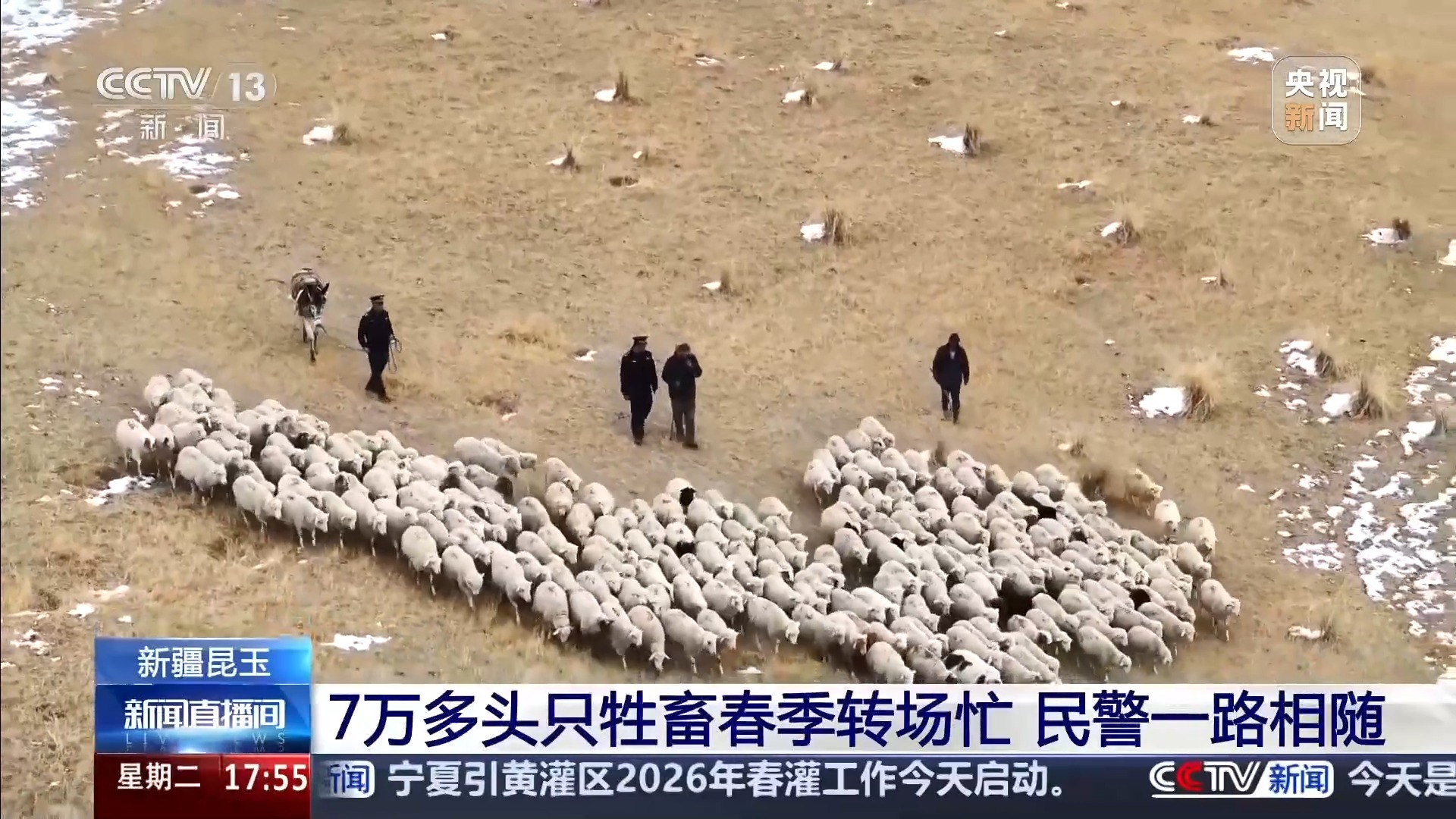 眼下,正是牲畜从冬季牧场向春季牧场转场的关键期。在位于昆仑山脚下的新疆昆玉市,当地民警一路相随,保障牧民春季转场顺利。