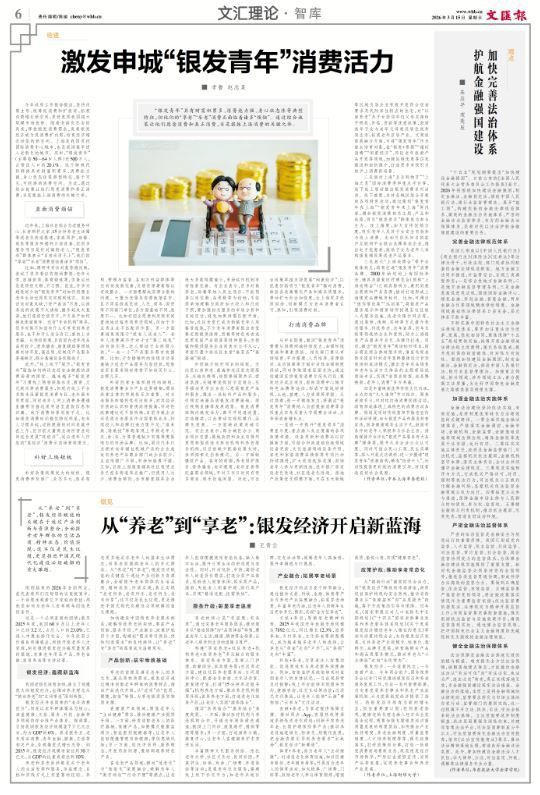 银发经济,一头连着民生,一头连着产业。今年两会前夕,国务院常务会议专门研究推进银发经济和养老服务发展工作,作出一系列重要部署,为完善发展养老事业和养老产业政策机制、大力发展银发经济提供了指引。将银发经济培育为新的增长点,抓住重要窗口期,把积极老龄观、健康老龄化理念融入经济社会发展全过程,需要加强支撑银发经济高质量发展的制度供给,加快健全产业扶持制度、养老金融制度、质量监管制度、人才培养制度等等,强化政策落实,打好政策组合拳,打造一批银发消费新场景新业态,规范银发经济市场秩序,严厉打击虚假宣传、劣质产品等乱象,促进养老事业和养老产业发展。