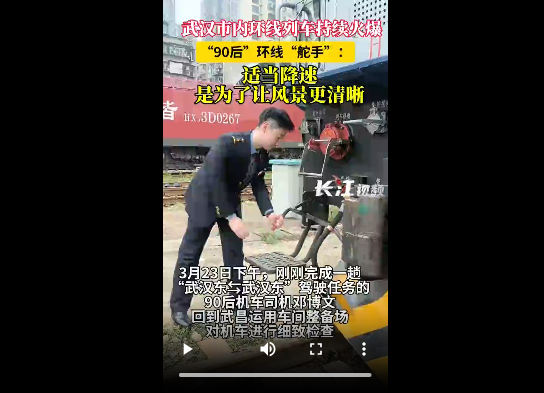 3月23日下午,邓博文完成“武汉东⇆武汉东”环线车次驾驶任务后回到武昌南机务段武昌运用车间整备场。他笑着说:“没想到会这么火爆,不少从外地赶来体验的乘客拉着我拍照。”