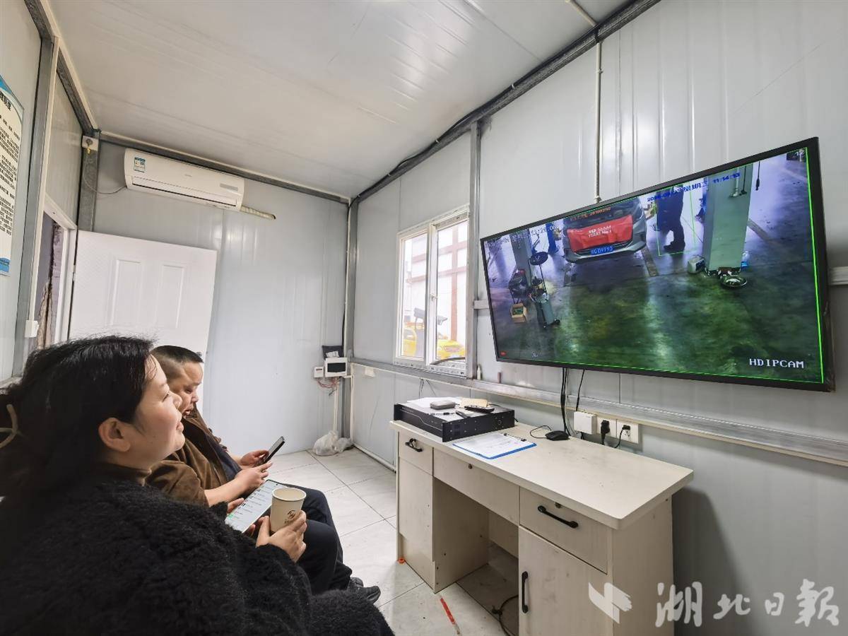 客人通过实时监控设备,观察车辆维修情况。(通讯员余静摄)