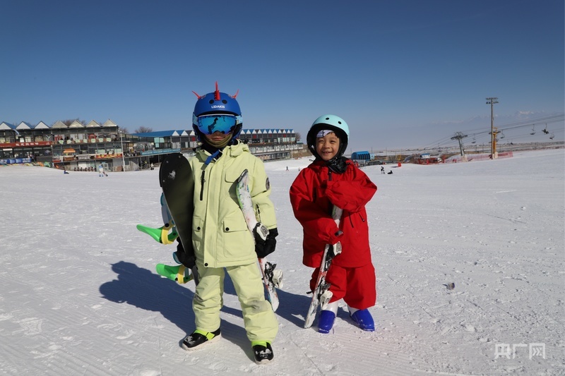 萌娃展示自己的滑雪装备 (央广网记者 丁安 摄)
