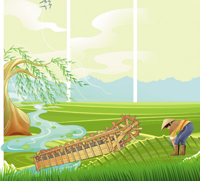 宋代《耕获图》中的脚踏翻车。资料图片