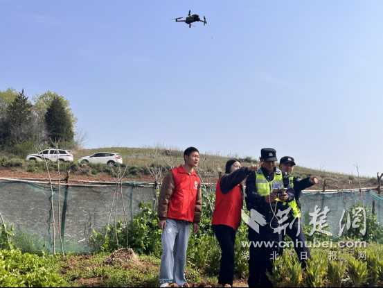 荆楚网(湖北日报网)讯(通讯员 李黎)近期,湖北省钟祥市启动“天上巡、地上查、举报奖”三维模式,以无人机航拍全域覆盖、警民实地核查重点区域、奖励举报拓宽线索渠道的硬核举措,推动禁种铲毒工作走深走实,成效显著。图为钟祥市公安局洋梓派出所民警操作无人机、禁毒社工、禁毒志愿者实地排查罂粟种植场景。