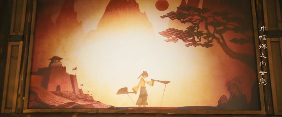 而台上的皮影戏也隐喻着女主樊长玉的命运。“戎装换却庖刀影,巾帼挥戈向云麾”,一语双关,既指皮影中提刀挥舞的女将军,也暗示本剧樊长玉即将踏上杀猪匠到将军的蜕变之路。
