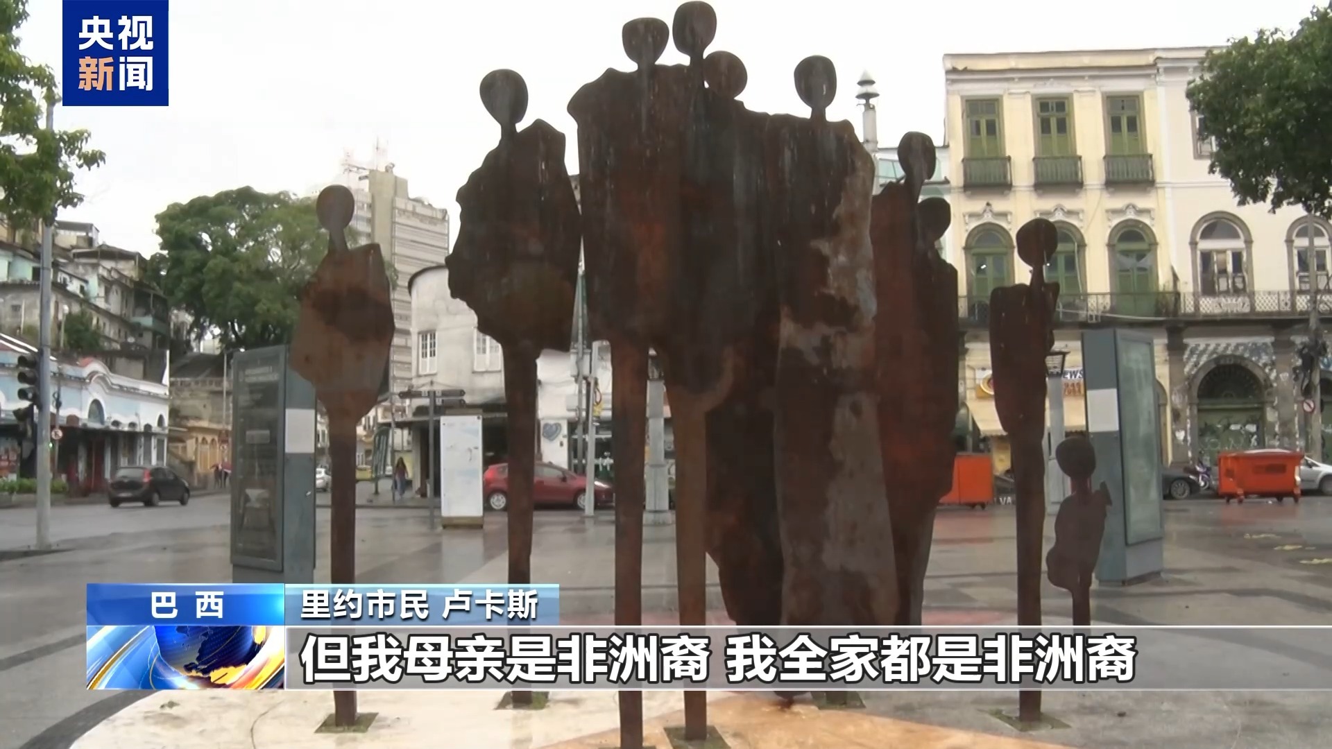 总台记者 雷湘平:这里是里约市中心的瓦隆古码头。它不只是一处普通的世界文化遗产,更是见证大量非洲黑奴登陆巴西的重要地点。19世纪,有上百万非洲黑奴从这里被贩卖到巴西各地,成为巴西种植园经济的基石,也埋下了这个国家种族、社会和经济不平等的历史根源。