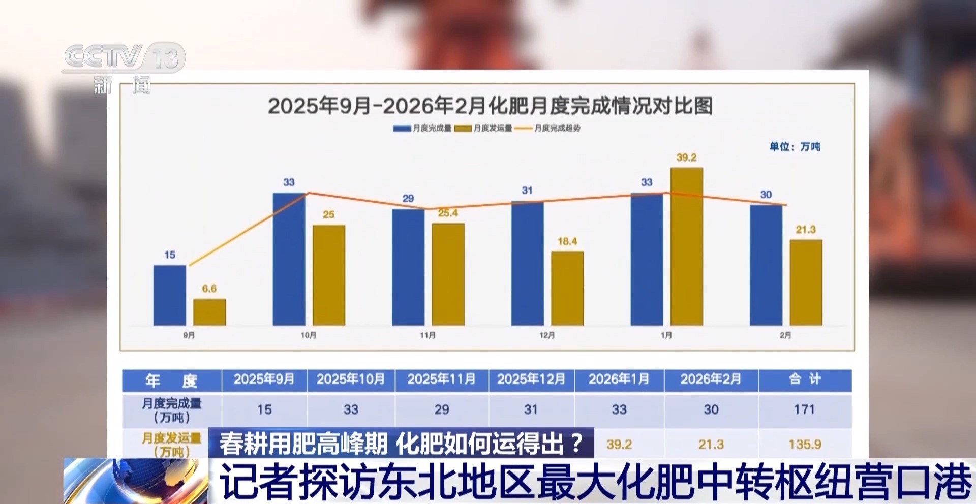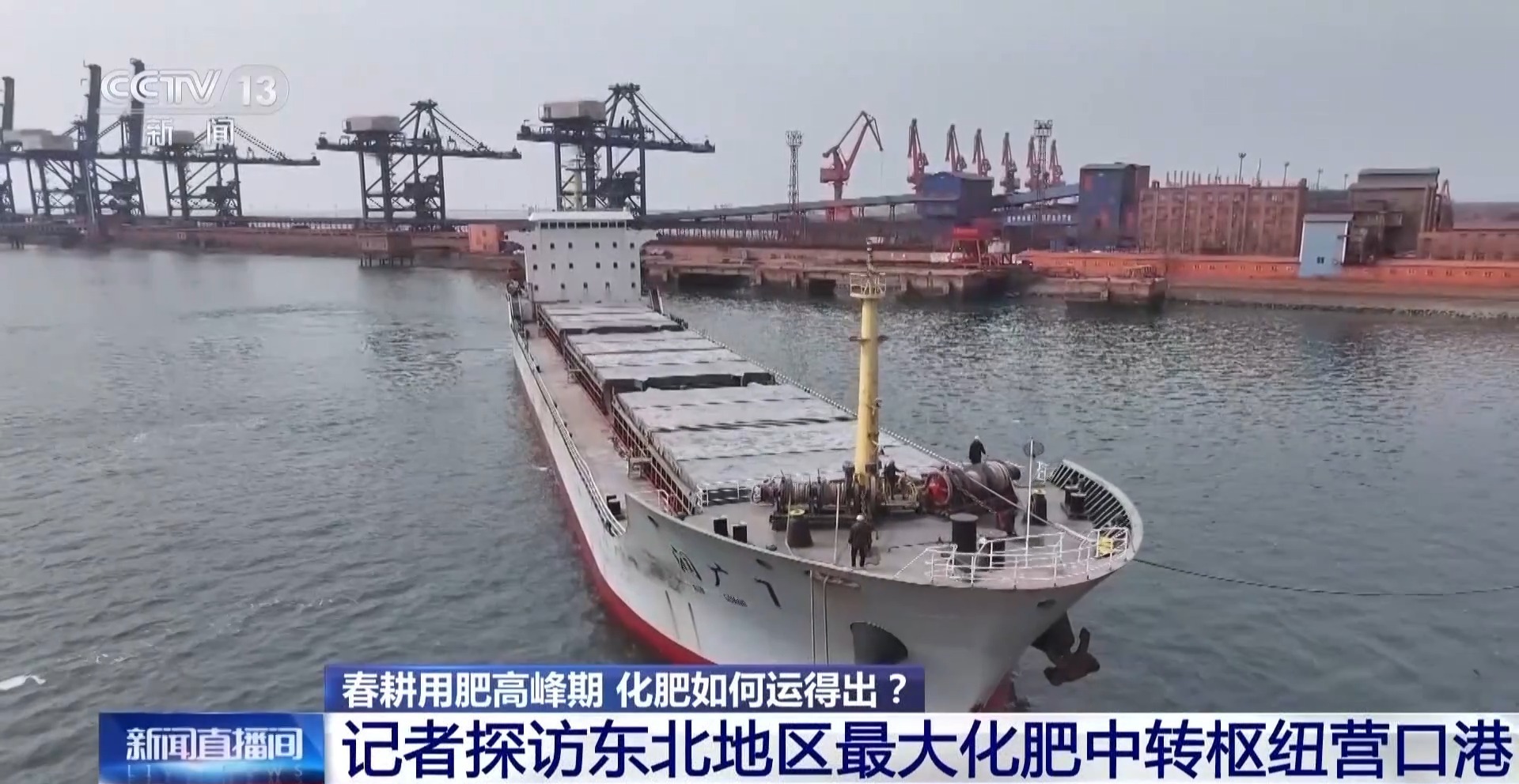 总台央视记者 田琪永:我们来到了辽宁营口港鲅鱼圈港区。为什么关注这个港口?因为这里是东北地区最大的化肥中转枢纽,东北春耕超半数以上的化肥都需要在这里进行中转。