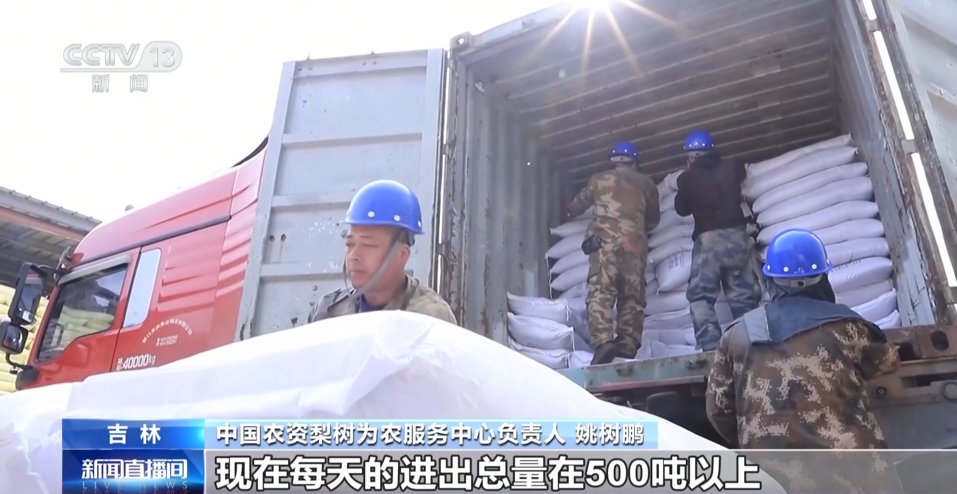 中国农资梨树为农服务中心负责人 姚树鹏:目前已储备化肥9万余吨,现在每天的进出总量在500吨以上,我们开通了点对点下乡配送服务,化肥直接送到村屯、送到地头,全力保障咱们农户春耕用肥量足、价稳、质优。