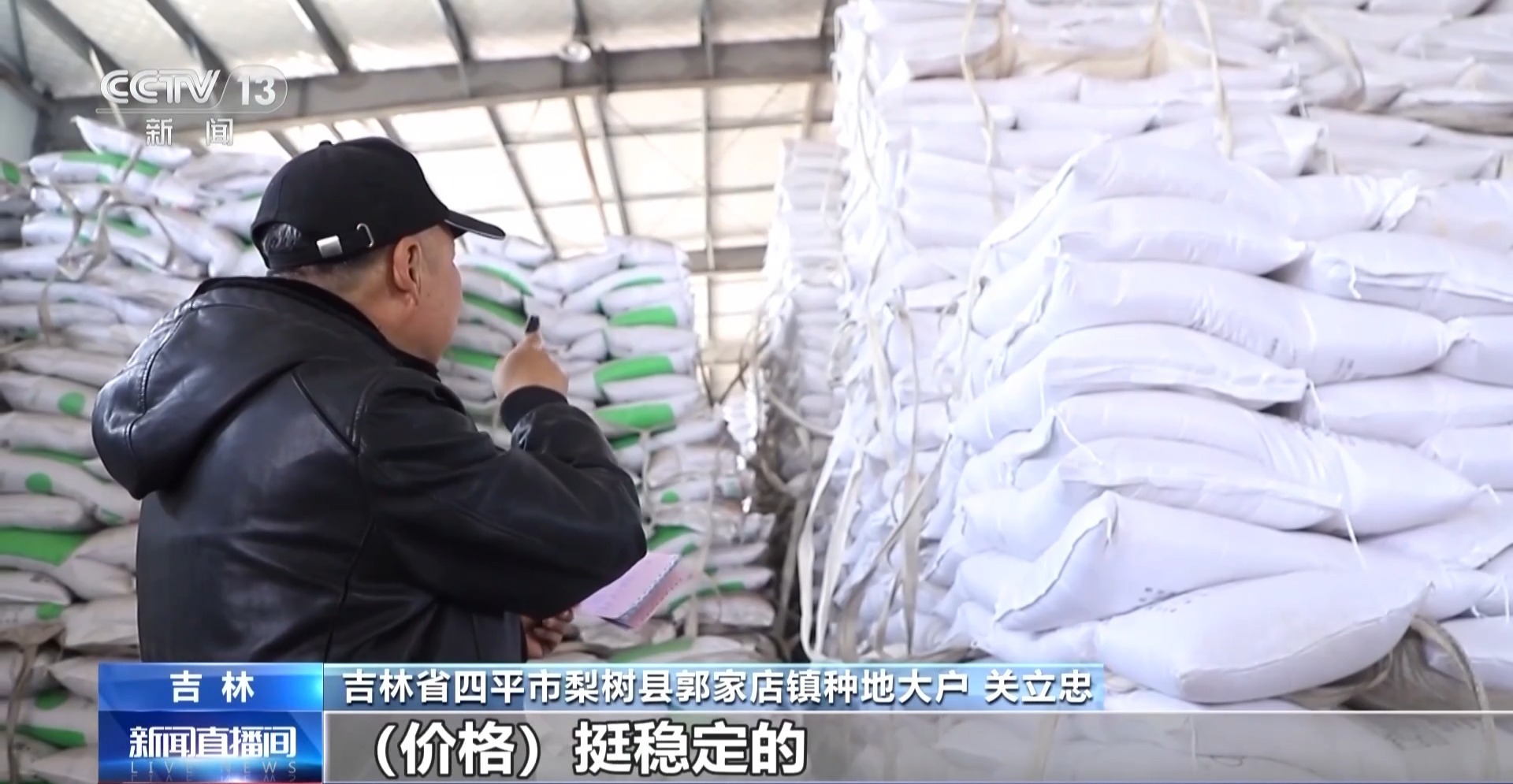 吉林省四平市梨树县郭家店镇种地大户 关立忠:我种了200多亩地,买20多吨化肥,价格挺稳定的,现在这库里都有货,我们随时随地都可以取。