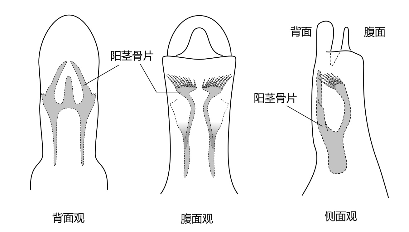 (五枝缺叉等翅石蛾阳茎骨片示意图)