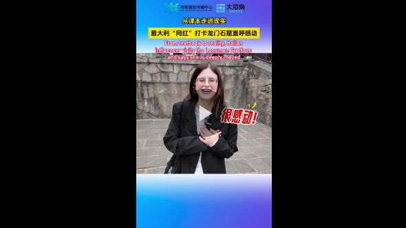 大河网讯 3月25日,“寻访斯诺足迹”中外大V河南行活动最后一站走进洛阳龙门石窟。来自意大利的“网红”夕琳花站在卢舍那大佛前,难掩激动之情。