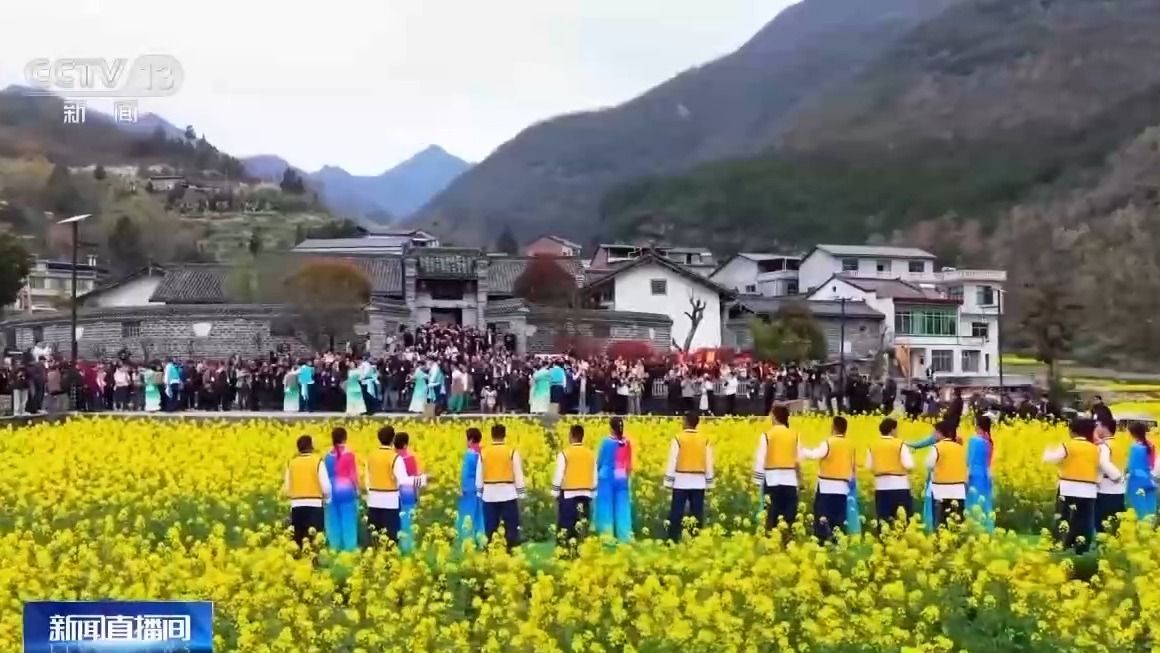 走进凤堰梯田,层层叠叠的梯田与金黄花海相互映衬,构成一幅动态十足的春日美景。