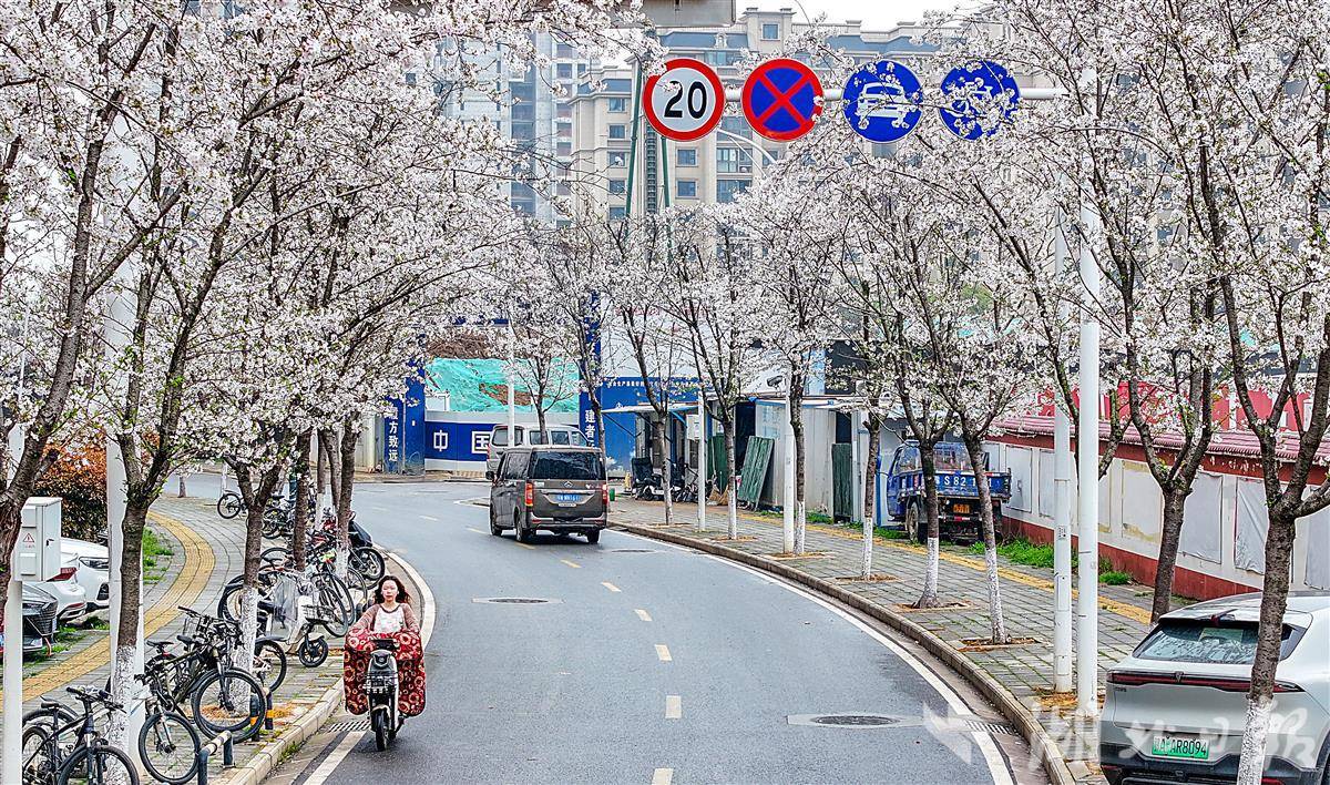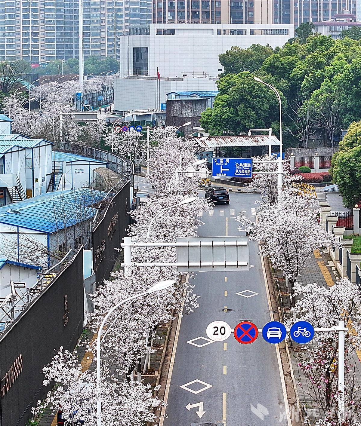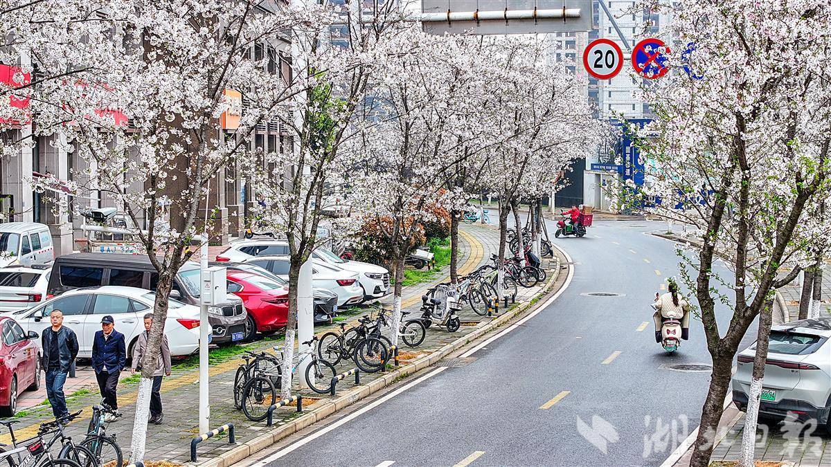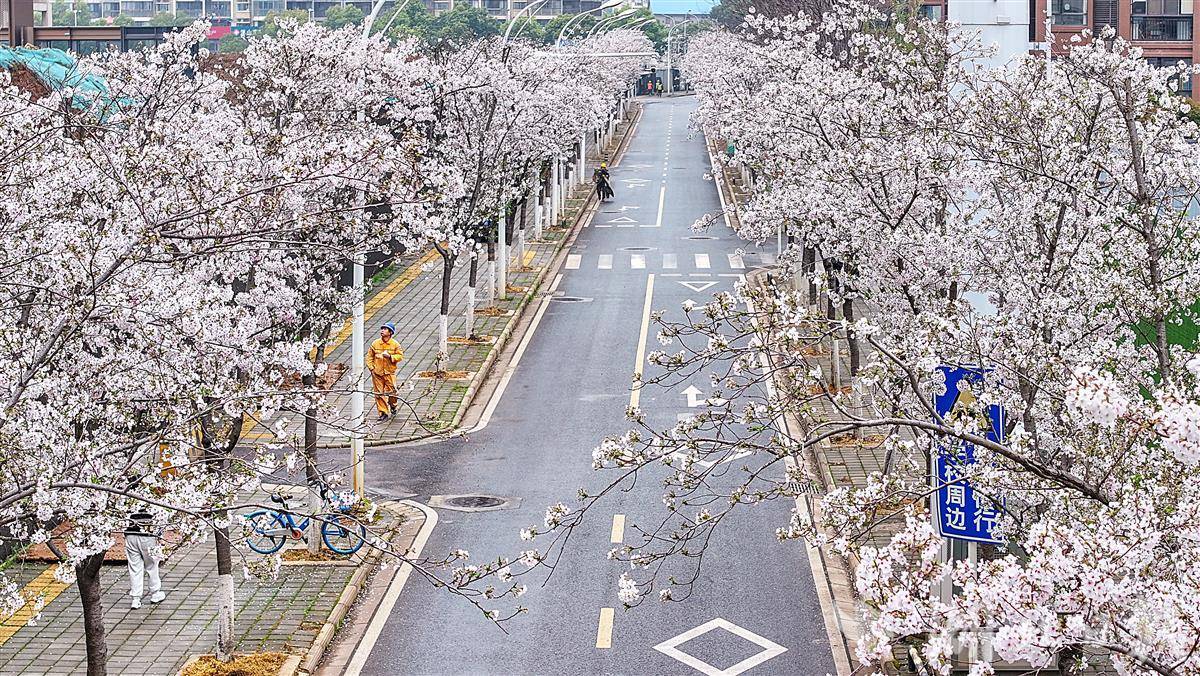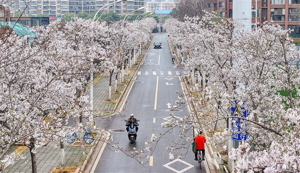 3月26日,繁花似锦,樱雪倾城。武汉南湖畔的桂园东路樱花已进入最佳赏花期。