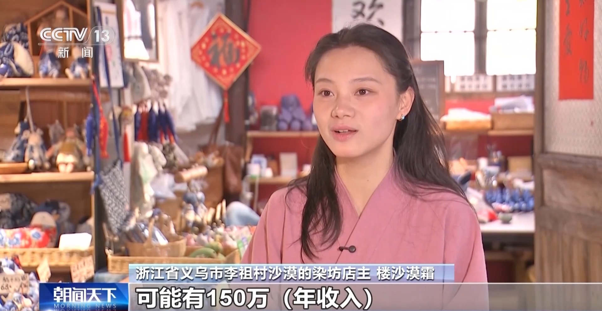 浙江省义乌市李祖村沙漠的染房店主 楼沙漠霜:其实我也没算过,可能年收入有150万。