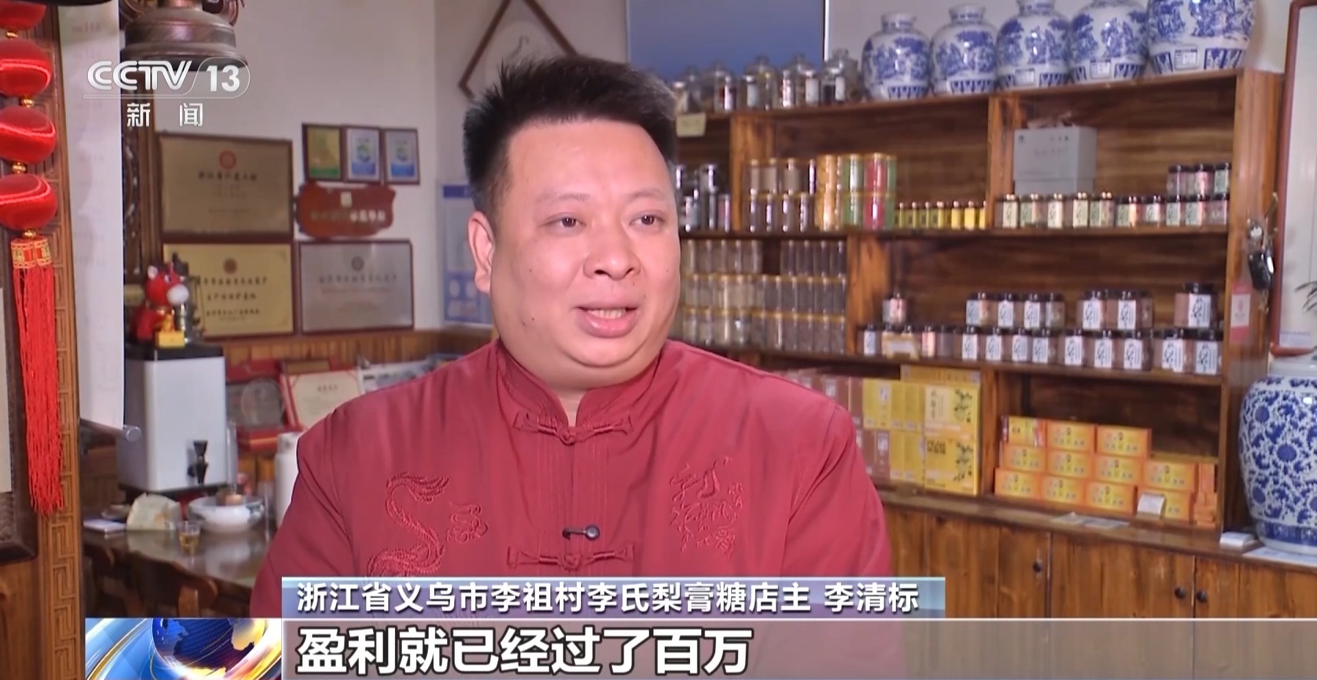 浙江省义乌市李祖村李氏梨膏糖店主 李清标:第一年我们入驻这里,盈利就已经过了百万。