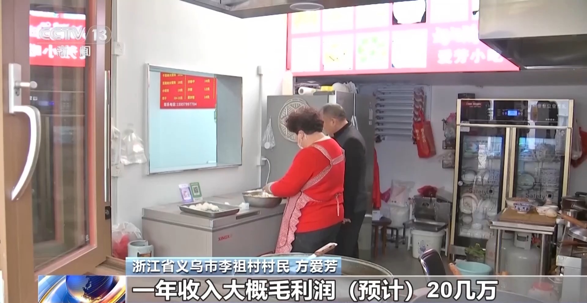 浙江省义乌市李祖村村民 方爱芳:我有钱赚,店铺一年毛利润预计20几万。“千万工程”对我们老百姓好的,家门口有钱赚,一点压力都没有。