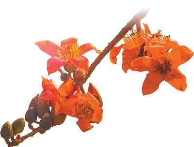 天气渐暖,在四川省攀枝花市,攀枝花风风火火地开了。碧绿的金沙江畔,硕大的花朵在数十米高的树上含馨吐蕊,洋溢着蓬勃的生命力。