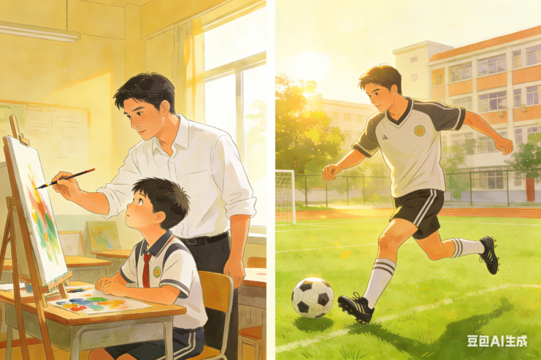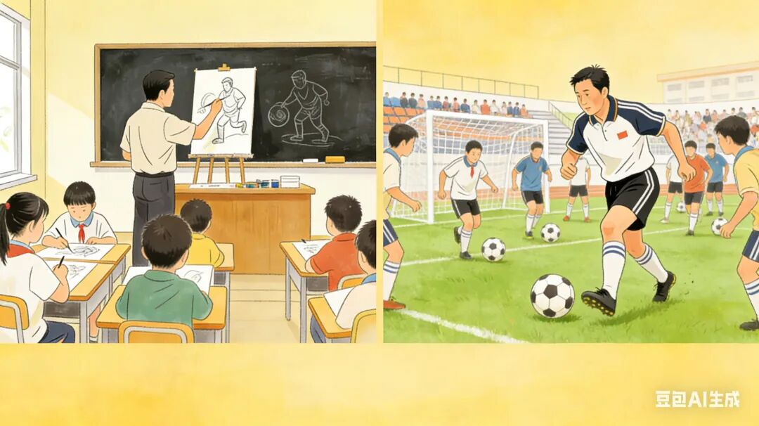 万子豪与严剑波的缘分,始于小学四五年级的美术课堂。在年少的万子豪心中,严剑波是执笔教画、温和耐心的美术老师,直到偶然听闻这位老师脱下衬衣换球衣,在绿茵场上肆意奔跑拼抢。这份强烈的反差让他满是惊讶,也悄然在心底埋下了一颗足球的种子。