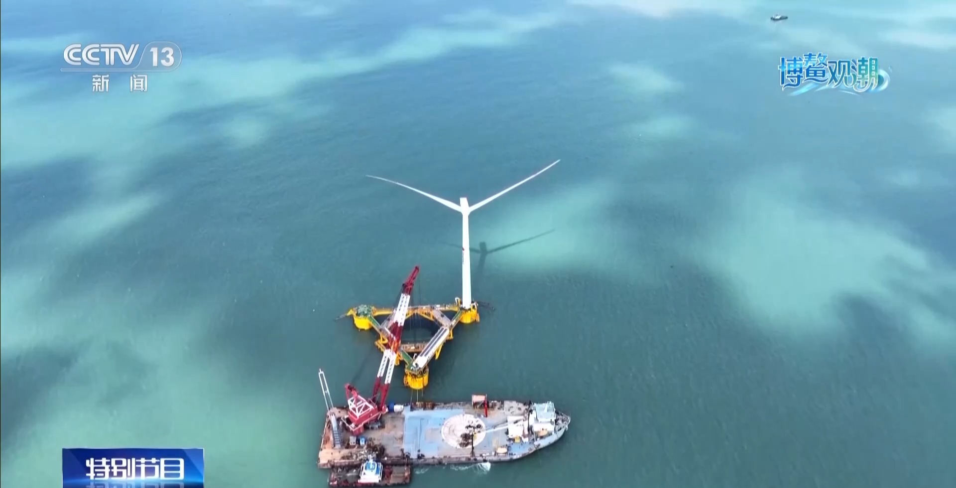 福建有着3700多公里的海岸线,蕴藏着优质的风能资源。上图是位于福建闽南海域的全球首台20兆瓦海上风电机组,它的超长叶片达到了147米,就像一个捕风巨手,它的扫风面积相当于10个标准足球场。