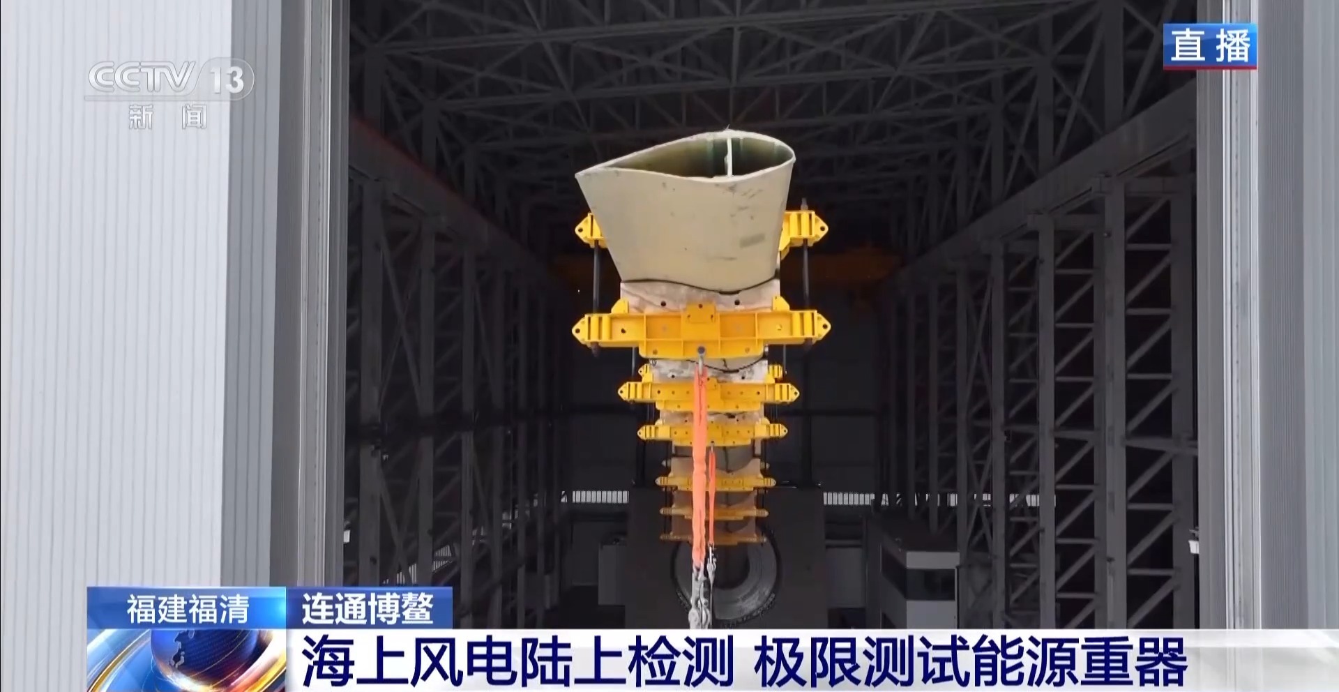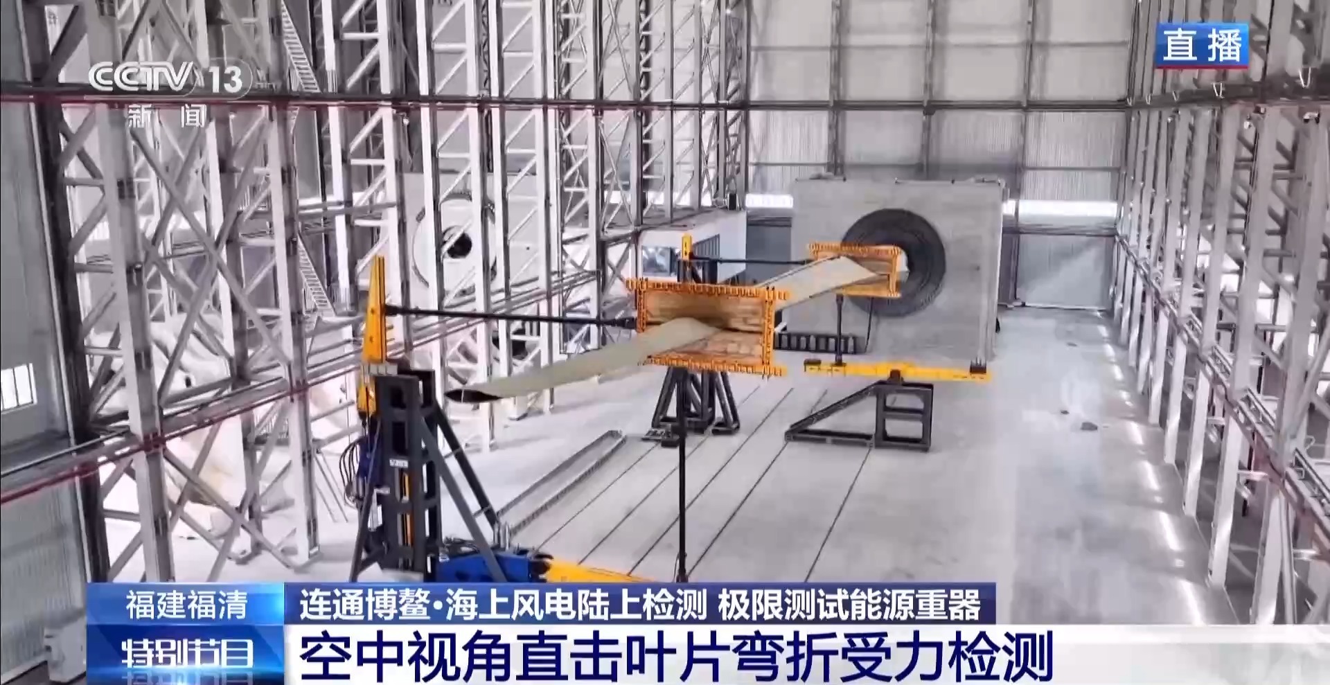总台记者 黄珊:这里的检测包含两个部分,一个是叶片测试平台,另一个是测试主机的传动链测试平台。