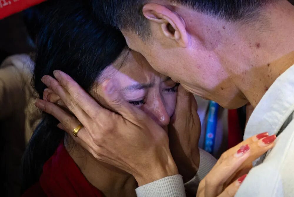 李林、李鑫姐弟俩相拥而泣。新华社记者 肖艺九 摄