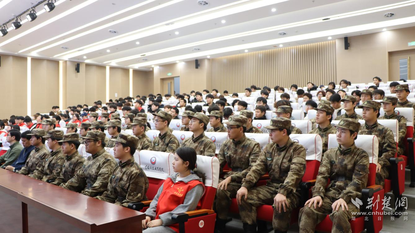 宣讲中,胡学明回忆起战友们在战场上舍生忘死的感人事迹:有的战友在生命的最后时刻,仍不忘向党组织交纳党费;有的战友牺牲前留下遗言,希望将遗物带回祖国;还有的战友出身军人家庭,却始终隐瞒身份,与战友并肩冲锋、血洒疆场。这些真实而震撼的故事,深深打动了在场的每一位师生。他勉励青年学子珍惜来之不易的和平环境,赓续红色血脉,传承大别山精神和雷锋精神,把个人理想融入国家发展和国防建设大局,以青春之我守护家国山河。