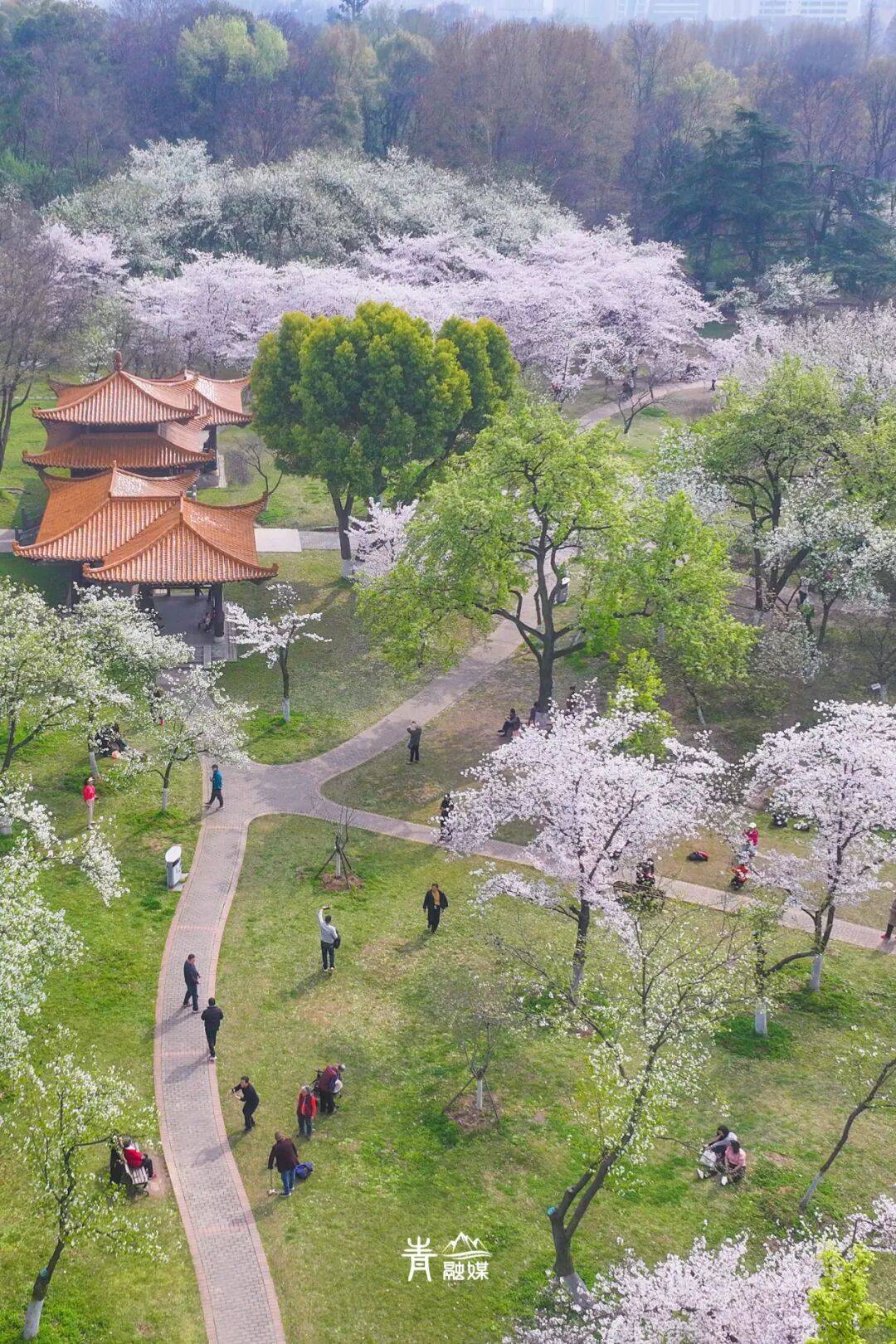 作为青山历史最悠久的公园,青山公园承载着几代青山人的记忆,园内培育有近700株樱花,集中分布于落樱缤纷景区的樱花苑,是青山人私藏的赏樱秘境。