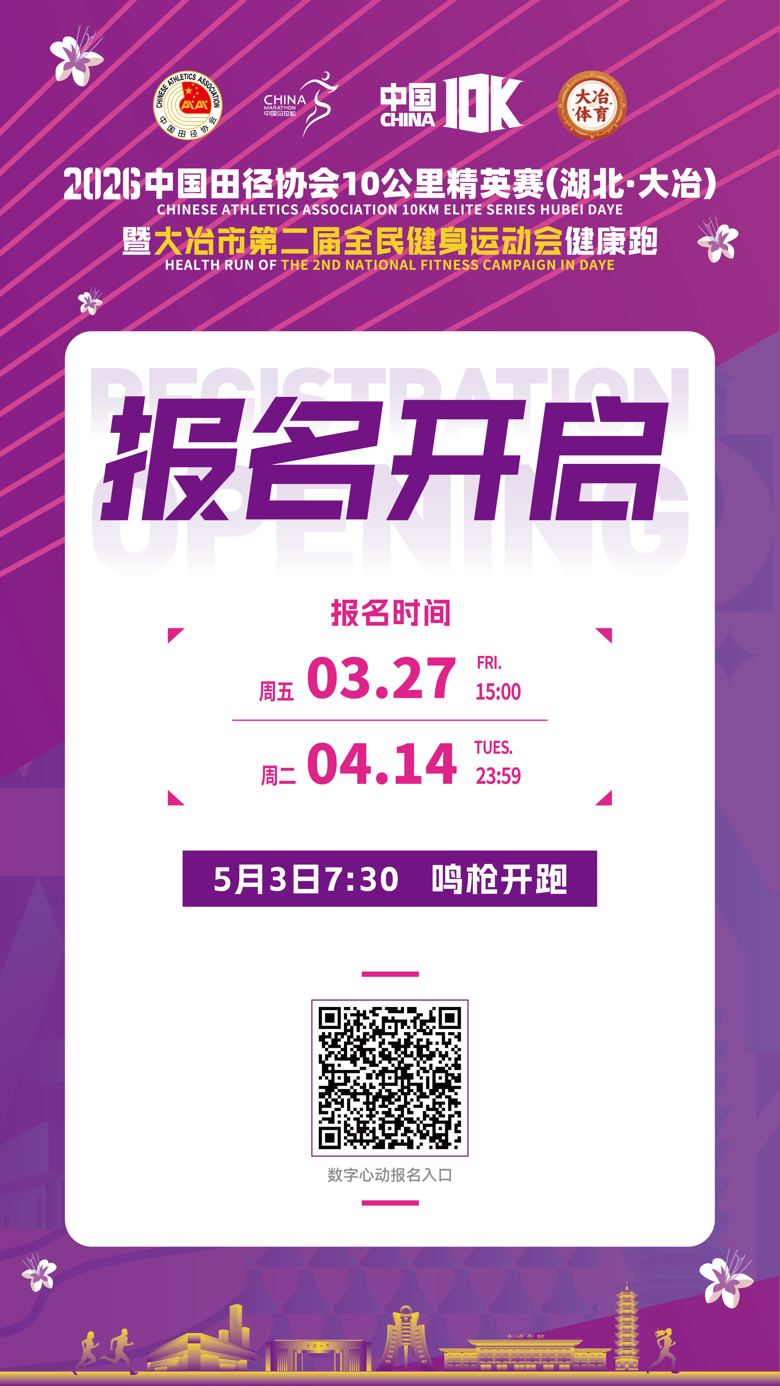 本次赛事落地湖北省大冶市,将是中国田径协会10公里精英赛首次落地湖北,助力湖北跑者在家门口登上国家级赛道,创造你的纪录!