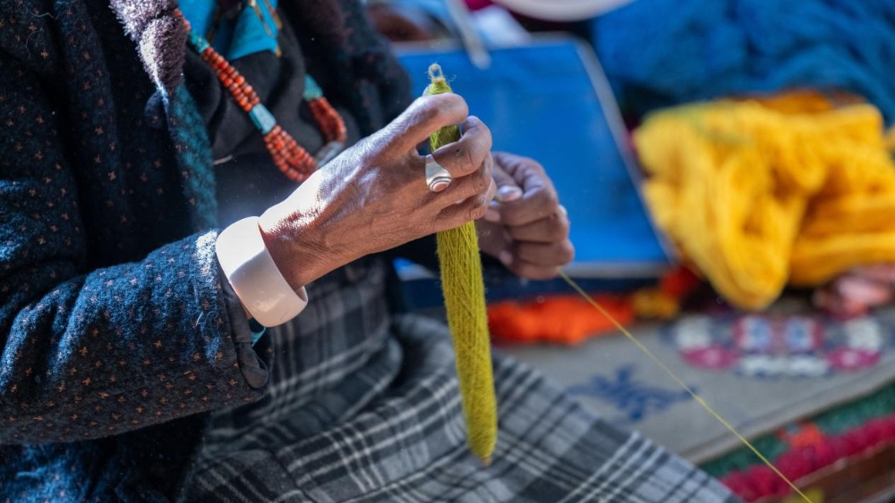 3月25日,西藏日喀则市岗巴县直克乡乃村顺心合作社员工在捻线。新华网 旦增努布 摄