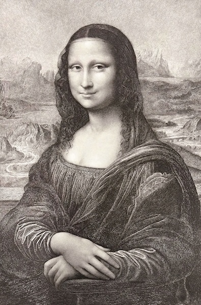 《蒙娜丽莎》达•芬奇绘画(1503-1506年)安德烈-夏尔·科皮耶刻制