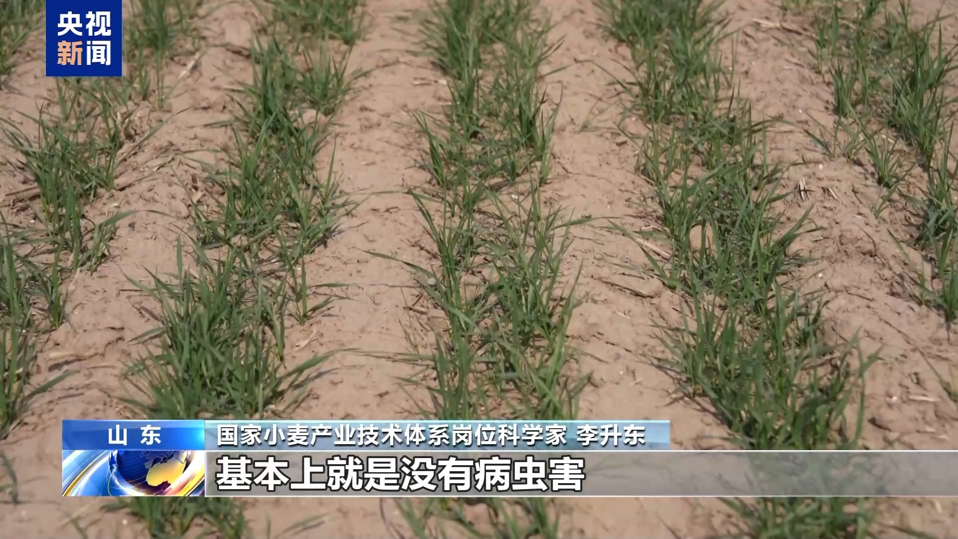 国家小麦产业技术体系岗位科学家 李升东:广谱的杀菌剂和杀虫剂都用一遍,用便宜的就行,不用最贵的。整体防一遍,这样对纹枯病、白粉病,甚至茎基腐病、红蜘蛛都有很好的效果,一次性防住。防住以后,后面等到了拔节期,基本上就没有病虫害。