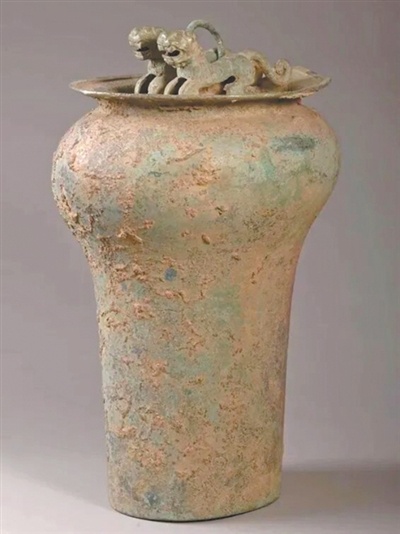 湖北恩施土家族苗族自治州建始县景阳河出土的双虎钮青铜錞于。
