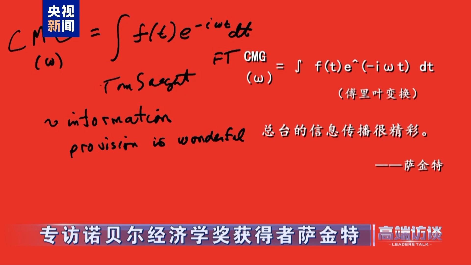 诺贝尔经济学奖获得者萨金特在接受总台专访后题词: