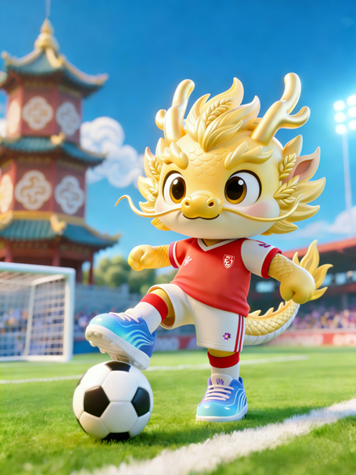 本IP以金龙为核心,是荆门足球文化的专属吉祥物。形象以灵动小龙人为原型,融合多重荆门地域符号:服饰以红色为主调,头饰与龙身纹样提取荆门出土错金银铜樽龙凤纹,传承千年楚文化底蕴;水浪元素呼应漳河水的灵动,金龙泉的金色龙鳞质感,串联起荆门的水韵特色。整体造型活力动感,既承载荆门历史文脉,又传递足球运动的热血精神,成为荆门足球文化的鲜活载体。